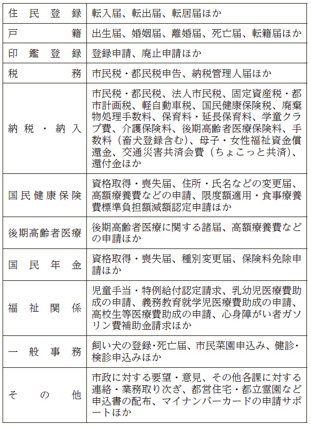 主な取り扱い業務は下表のとおりです(表2)。