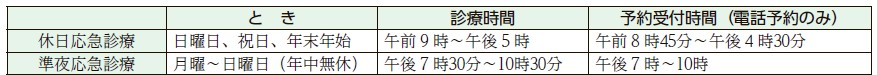 ※応急診療所の診療科目は内科と小児科です。高校生以下の受診は、保護者の同伴が必要です。