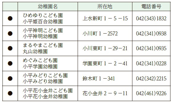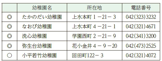 ◎…幼稚園アットホーム事業実施園(午前7時30分~午後6時30分、長期休業期間中も実施)