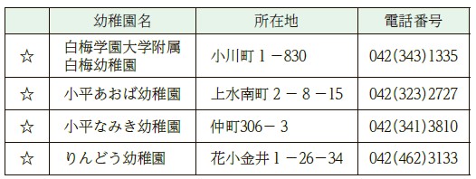 ☆…一時預かり事業(幼稚園型)実施園(各幼稚園が定める時間、長期休業期間中も実施)