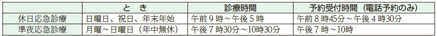 ※応急診療所の診療科目は内科と小児科です。高校生以下の受診は、保護者の同伴が必要です。