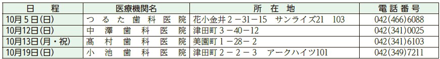 くらし 休日歯科応急診療医 18/49 前の記事 次の記事 発行日 : 2025年10月01日 自治体名 : 東京都小平市 広報紙名 : 市報こだいら 令和7年10月1日号 診療時間:午前9時~午後5時 ※受診の際は、事前にお問い合わせください。また、医療機関は変更になる場合があります。 Tweet シェアする 休日応急診療・準夜応急診療(内科・小児科) 救急診療などの相談・案内