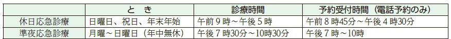 ※応急診療所の診療科目は内科と小児科です。高校生以下の受診は、保護者の同伴が必要です。