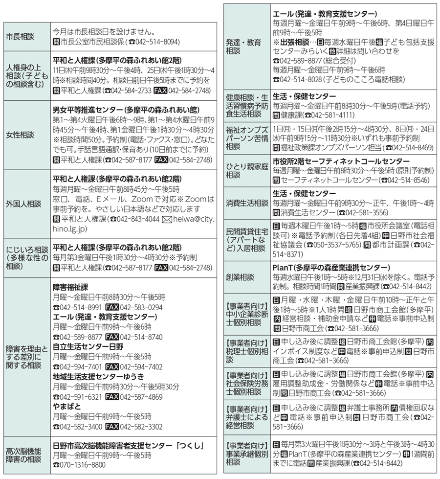 ※市政に対する一般相談は毎週月曜~金曜日(祝日を除く)の午前8時30分~午後5時に受け付け。予約などの受け付けは電話で午前8時30分から(先着順)