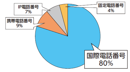 ▽最近の犯人からの電話は8割が国際電話番号から!(+1や+44から始まる番号)