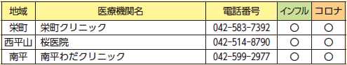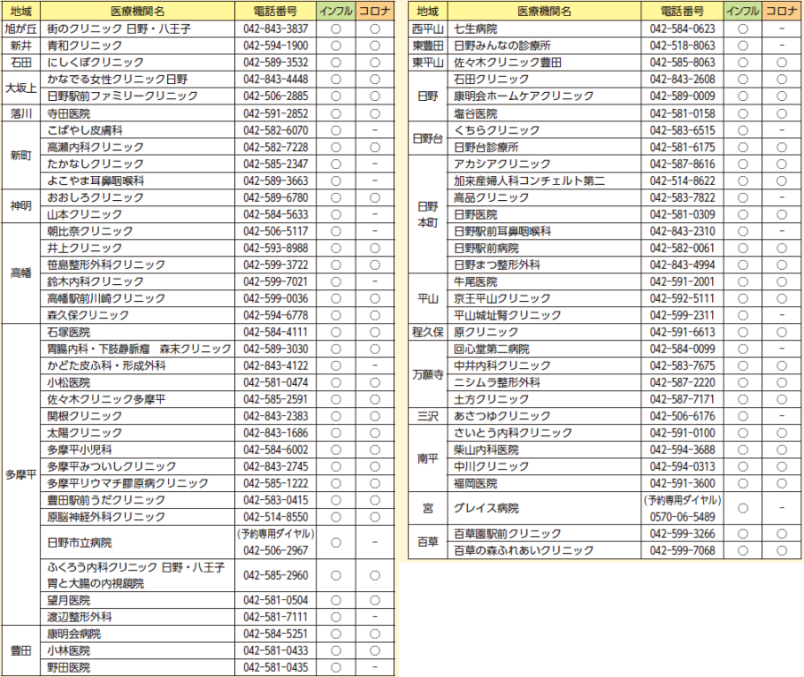 ※八王子市、町田市、多摩市、稲城市の契約医療機関についてはお問い合わせを