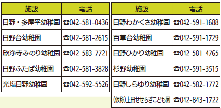 場所:市役所1階市民相談係、子ども包括支援センターみらいく1階保育課、七生支所、豊田駅連絡所、生活・保健センター内健康課、子ども家庭支援センター、地域子ども家庭支援センター(多摩平・万願寺)、市内各認可保育施設、市内各児童館
