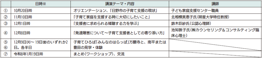 申し込み:10月9日(木)(必着)までに〒191-0024万願寺4-20-12 日野子育てパートナーの会へ郵送、ファクスまたは持参。受講希望講座、氏名、郵便番号、住所、年齢、電話番号を記入