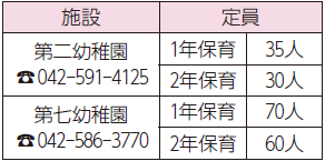 対象:入園時に幼児・保護者とも市内在住で住民登録をしており、幼児の生年月日が、1年保育は令和2年4月2日~3年4月1日生まれ、2年保育は令和3年4月2日~4年4月1日生まれ