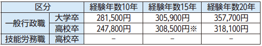 ※該当の職員がいないため、一般行政職の高校卒経験年数15年については、経験年数17年の給料月額を記載しています