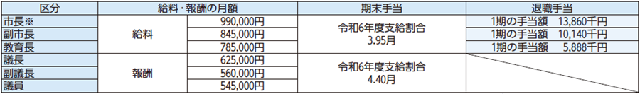 ※令和5年5月1日から令和7年4月26日の期間における市長の給料月額について35%を、期末手当について年1月をそれぞれ減じています
