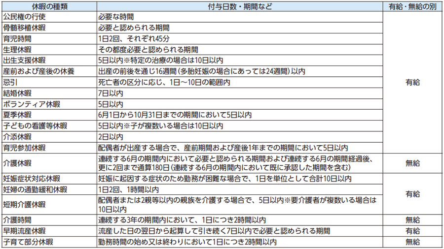 ※1 土曜・日曜日などに出勤し、振替休暇を取得した場合は含みません