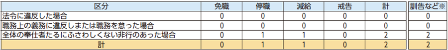 ※訓告などとは、懲戒処分に至らない行為で、その責任を確認させ、将来を戒めるための措置です
