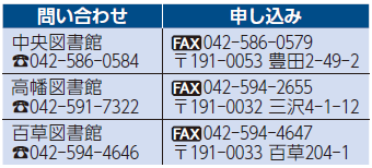 その他・注意事項:令和8年4月利用分から中央図書館・高幡図書館の利用時間を変更。詳細は図書館HP参照