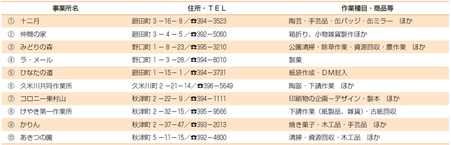 市内の障害者就労支援施設では、次のような業務を受託しています。