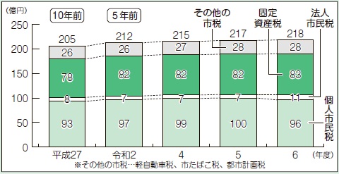 ※標準財政規模とは、市税・地方譲与税や地方交付税等の標準的な水準の行政サービスを提供するうえで必要な一般財源の総量の目安となる数値で、国・都補助金等の特定財源は含まれません。