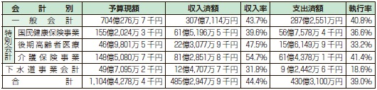 市の財政状況をお知らせするため、年2回、各会計の執行状況等を公表しています。