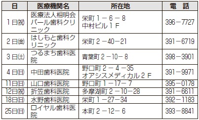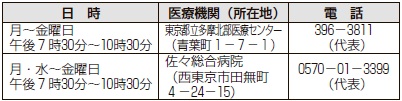 ・広域的な休日診療や夜間診療(眼科・耳鼻科・歯科等)については東村山消防署医療機関情報案内(【電話】391-0119)へ