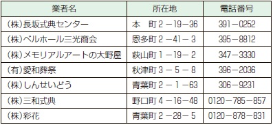 申込み:直接、市民葬儀取り扱い指定業者へ(表2参照)