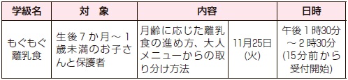 ※保護者のかたに向けた離乳食の試食があります。食物アレルギーのあるかたはお申し込み時にお知らせください。