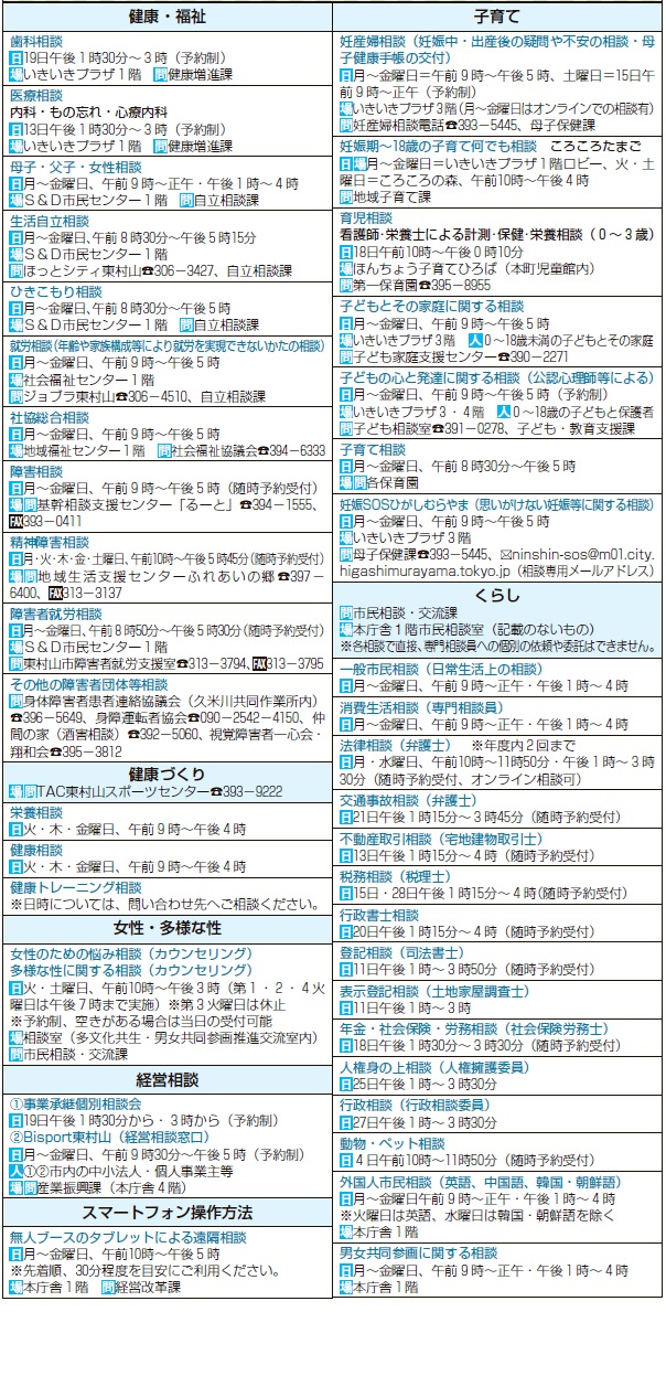くらし 困ったとき~今月の相談 31/39 前の記事 次の記事 発行日 : 2025年11月01日 自治体名 : 東京都東村山市 広報紙名 : 市報ひがしむらやま 令和7年(2025年)11月1日号 ■今月の相談 ※日程は祝・休日を除く Tweet シェアする おしごと探検ひがしむらやまの開催 困ったとき~夜間・休日に急病になってしまったら