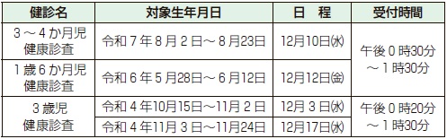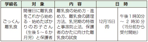 申込み:12月5日(金)までに電話又は直接母子保健課(いきいきプラザ3階)へ