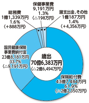 医療費等(保険給付費)が2.2億円の減少となりました。また、国民健康保険事業費納付金も0.9億円の減となりました。