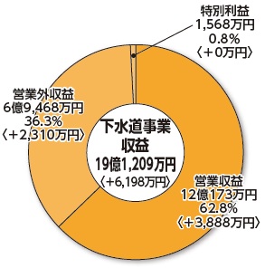 全体の62.8%を占めるのは、営業収益です。主なものは、下水道使用料や雨水処理にかかる一般会計負担金です。