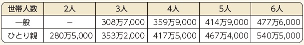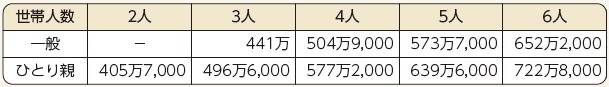 ※世帯人数とは、父母等養育者と(就学中、未就学、今年度受験予定の浪人生、傷病やしょうがいの理由で就学・就労が困難な事が確認できる等の)子どもの人数を指します。