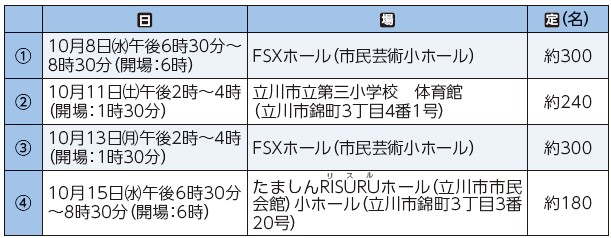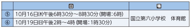 凡例:[日]=日時 [場]=場所 [定]=定員