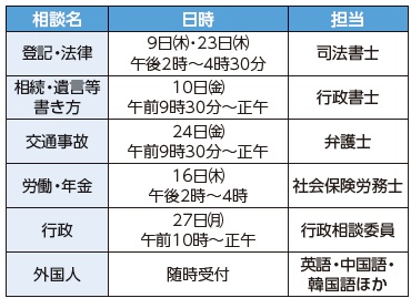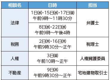 ※人権相談は回数の制限なし。1回あたり1時間。