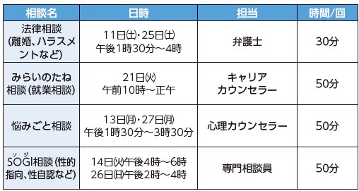 ※各種相談はそれぞれ年度内3回まで利用可能。1回あたり30分間無料。