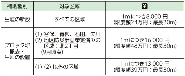 市では、市内緑化の推進を目的として、生垣設置にかかる補助金制度を設けています。新たに生垣を設置したい、既存のブロック塀を取り壊し、生垣に変えたいという方は、その設置にかかる費用の補助を受けられる場合があります。詳細は、市HPをご覧いただくか、問合せまでお問い合わせください。
