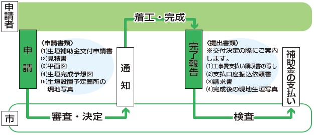 ※生垣設置工事は、必ず補助金の交付決定を受けてから着工してください。交付決定前に着工した案件は、補助対象外です。