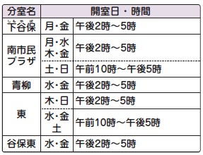 ※月~金曜日の各分室開室日が祝日等と重なった場合はお休みです。