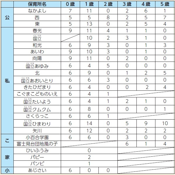※入退園の状況により、表内の児童数が変更となる場合があります。