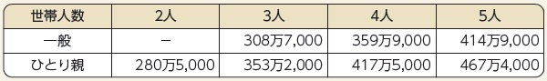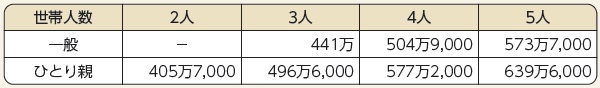 ※世帯人数とは、父母等養育者と18歳未満の就労をしていない子どもと18歳以上の就学中の子どもを指します。傷病やしょうがいの理由で就学・就労が困難な事が確認できる子どもも、世帯人数に含む場合があります。
