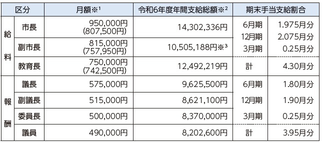 ※2 市長、副市長、教育長は、給与額変更後の総額です。
