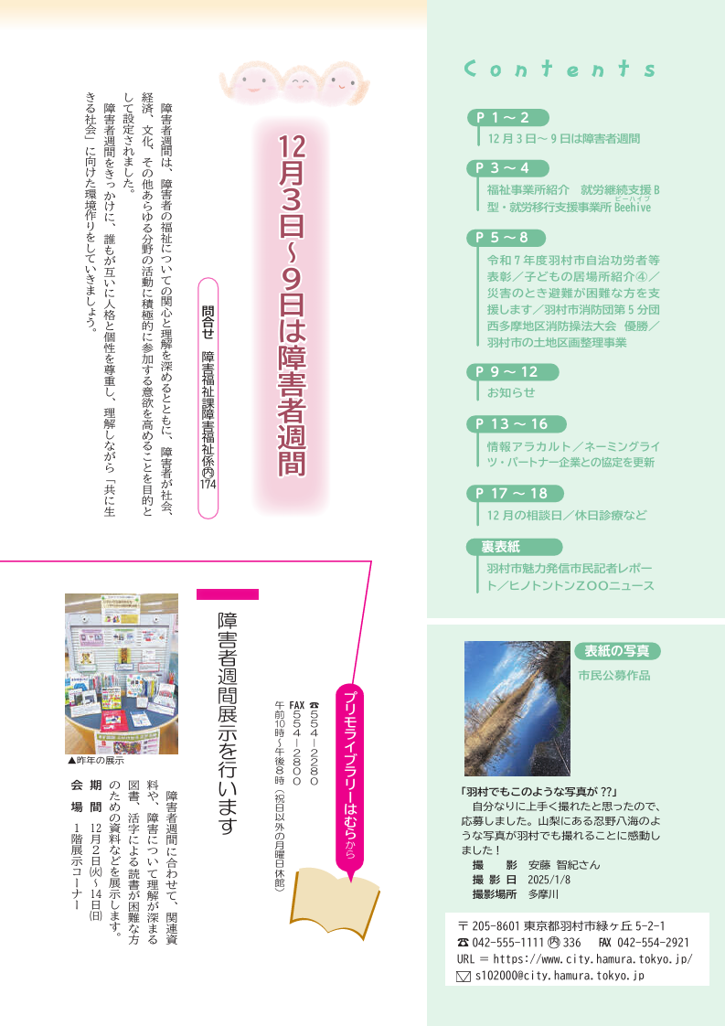 くらし 広報はむら 2025年12月1日号 P.01 2/20 前の記事 次の記事 発行日 : 2025年12月01日 自治体名 : 東京都羽村市 広報紙名 : 広報はむら 2025年12月1日号 Tweet シェアする 広報はむら 2025年12月1日号 表紙 広報はむら 2025年12月1日号 P.02