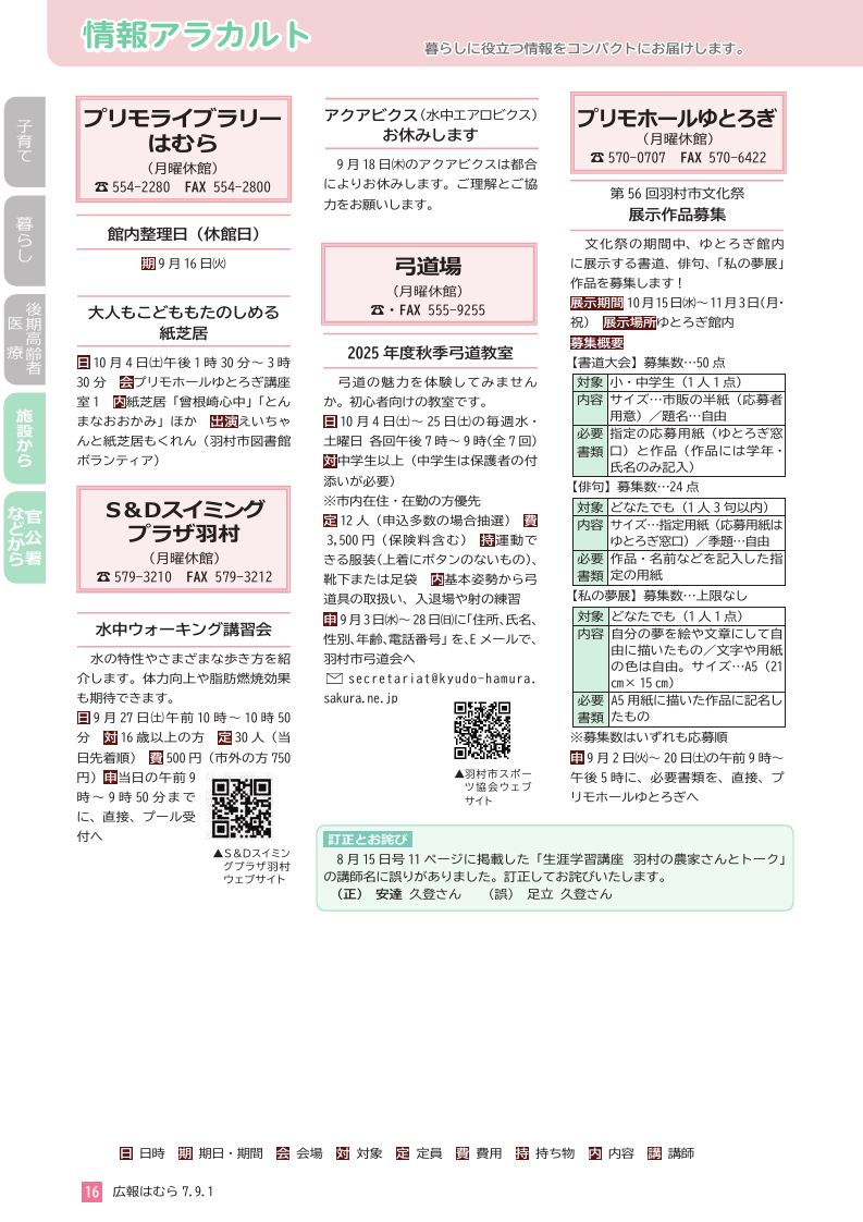 講座 広報はむら 2025年9月1日号 P.16 17/22 前の記事 次の記事 発行日 : 2025年09月01日 自治体名 : 東京都羽村市 広報紙名 : 広報はむら 2025年9月1日号 Tweet シェアする 広報はむら 2025年9月1日号 P.15 広報はむら 2025年9月1日号 P.17