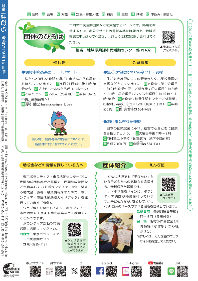 くらし 広報はむら 2025年9月15日号 P.15 16/16 前の記事 発行日 : 2025年09月15日 自治体名 : 東京都羽村市 広報紙名 : 広報はむら 2025年9月15日号 Tweet シェアする 広報はむら 2025年9月15日号 P.14
