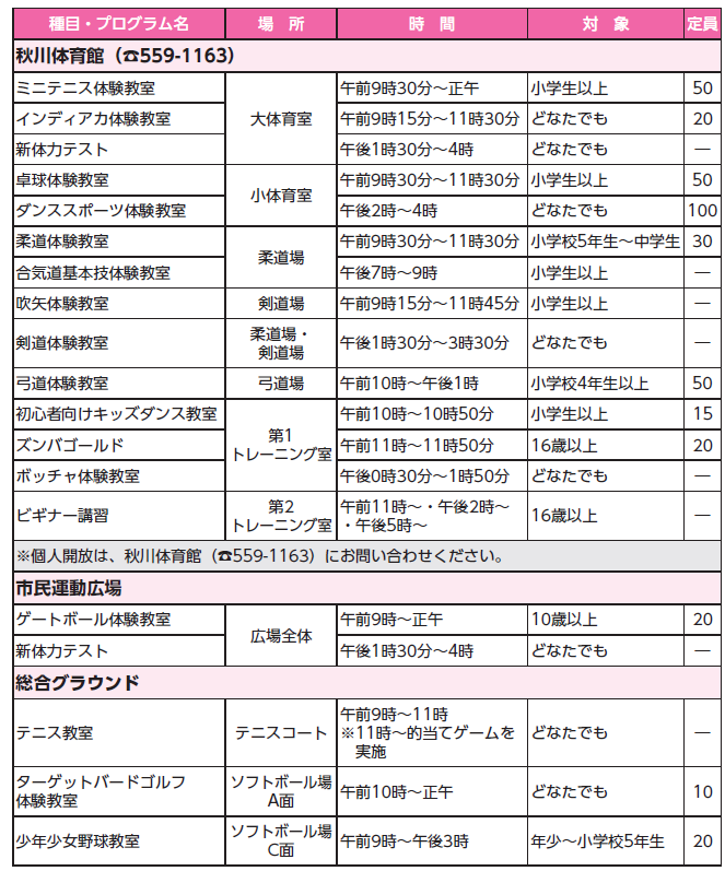 ■市内体育施設で行われるスポーツ体験教室などに無料で参加できます