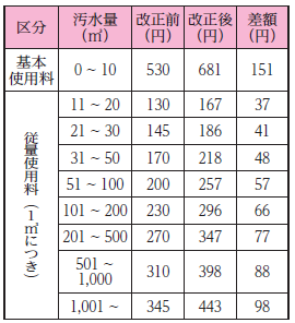 改正内容:基本使用料と従量使用料の合計金額となり、改定率は、一律28.5パーセント増加となります。