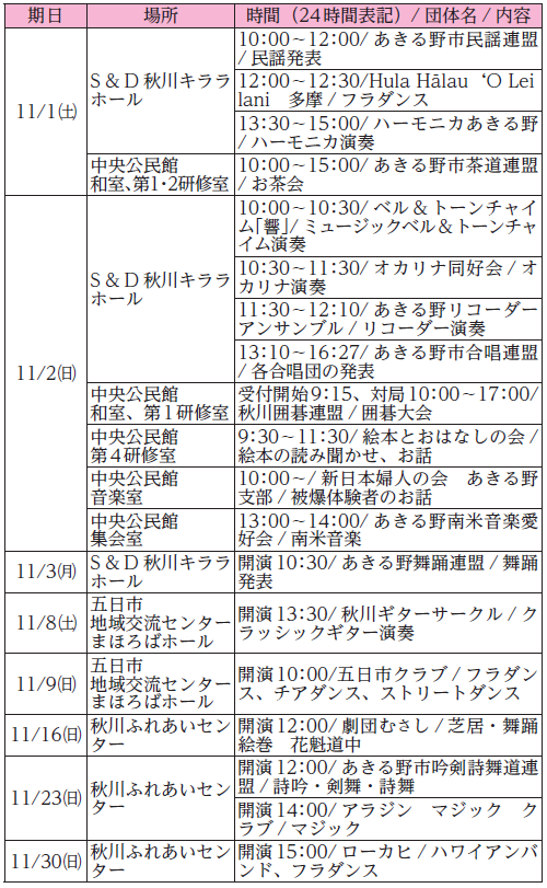 ▽あきる野市市制施行30周年記念「第28回あきる野市民文化祭」開催のお知らせ(11月)