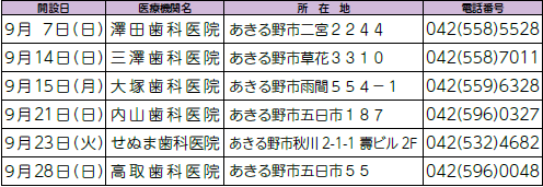 診療時間は全て午前9時〜午後5時。歯科診療は、お問い合わせのうえ受診してください。診療は急患に限り診療し、往診はいたしません。