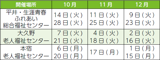 ・いきいき教室(立って行う体操が中心)…午後2時30分~3時30分