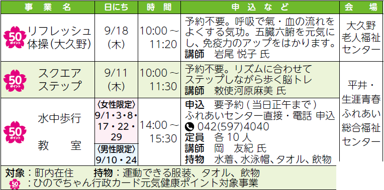 定員:40人(応募者多数の場合は、日の出町在住・在勤の方優先)