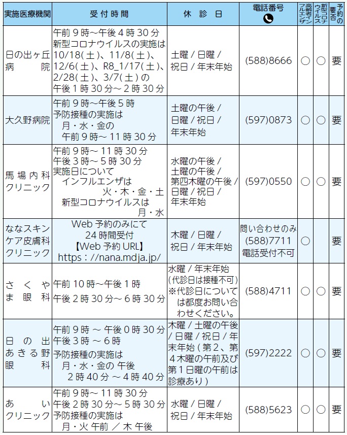 ※記載の医療機関のほか町外の西多摩医師会加盟の実施医療機関でも受けることができます。