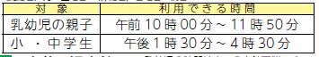 ※乳幼児の時間は車での来館可能です。