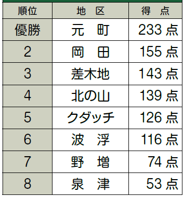 10月12日、第69回大島町体育祭体育レクリエーション大会を開催しました。選手のみなさんは、日ごろの練習の成果を十分に発揮し、大きなけがもなく楽しんでいました。大会は青年の部と、一般の部の合計点で競い合い、総合得点で元町地区が優勝しました。なお、今大会では2つの新記録が生まれました。